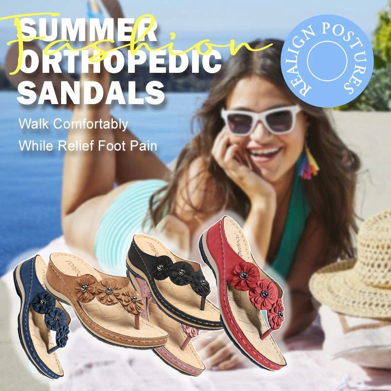 Orthopedic Flowers Clip Toe Sandals was designed by our team of podiatrists and orthopedists with one goal in mind: to correct your posture and give your body the best comfort! The Sandal corrects posture and eliminates muscle imbalances by moving angled toes back to its original position to realign skeleton positioning.